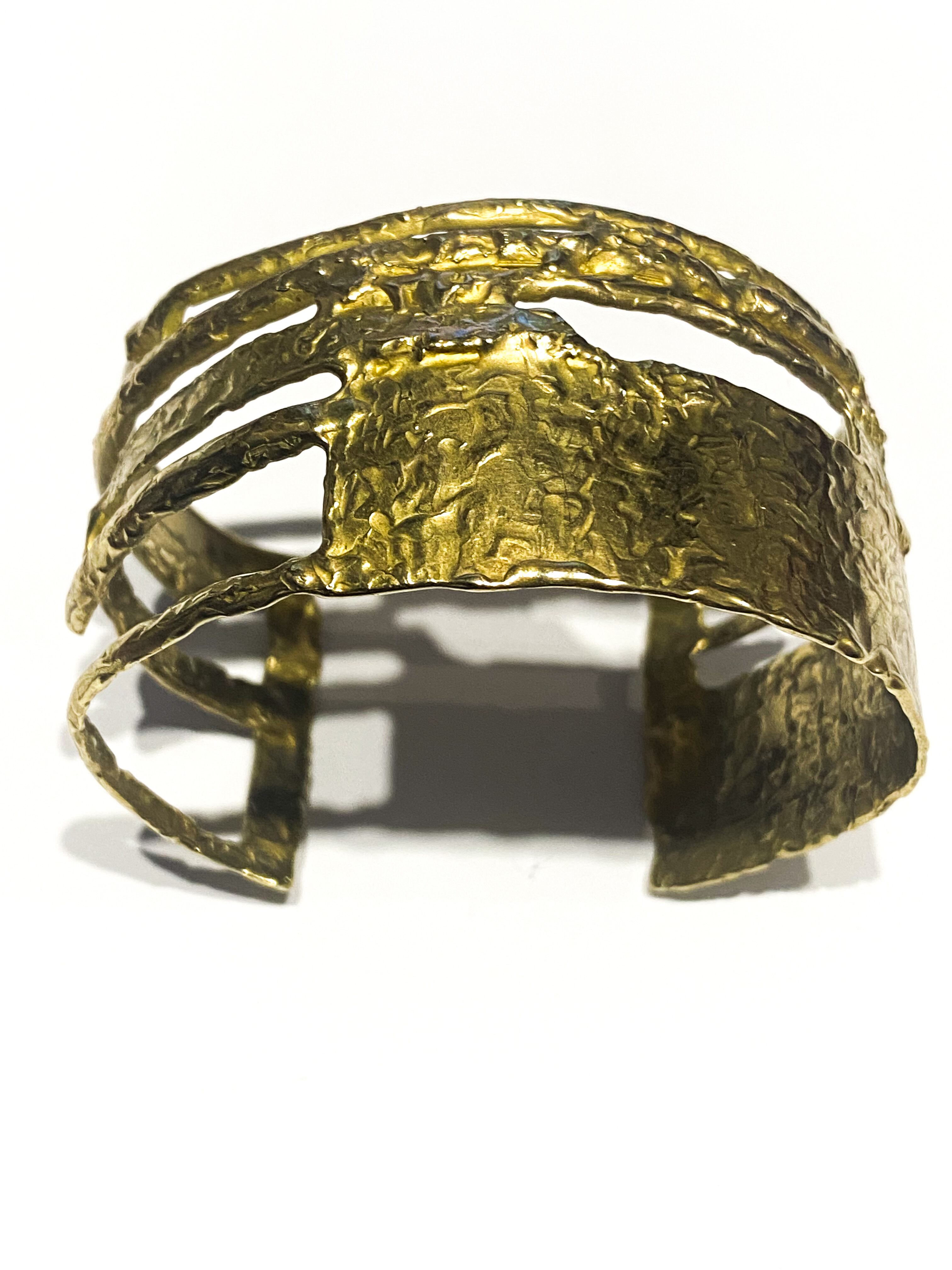 細い糸や太い糸を集めて無造作にぐるぐると巻いてみた。そんなイメージのバングル。